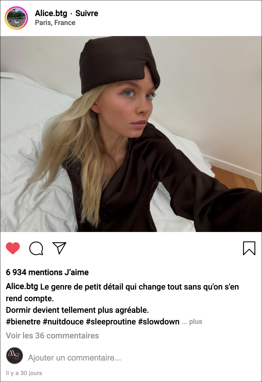 Il a été pensé comme un geste de soin nocturne, qui protège le sommeil, la peau et les habitudes beauté, avec une exigence de confort et de douceur.